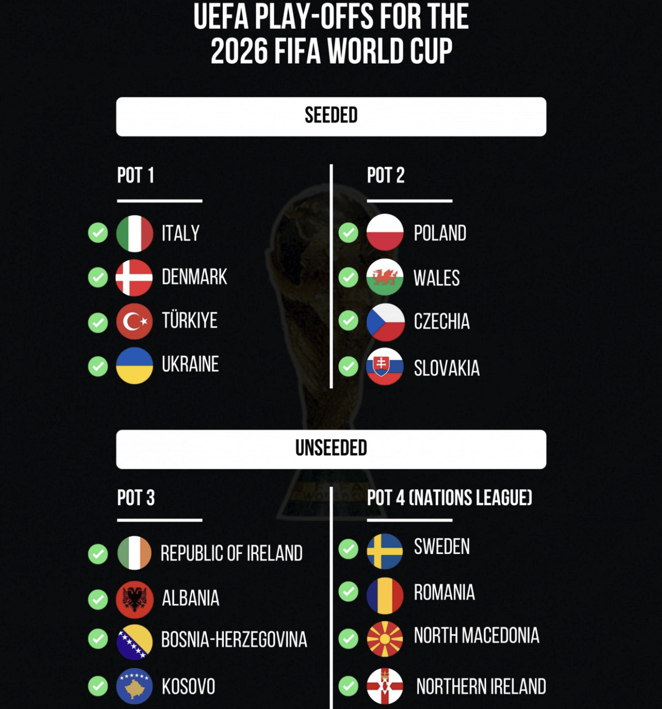 欧洲(4队):通过欧洲区附加赛晋级的4队